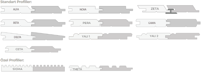 | Profil | Kalınlık (mm) | Genişlik (mm) | Uzunluk (mm) |