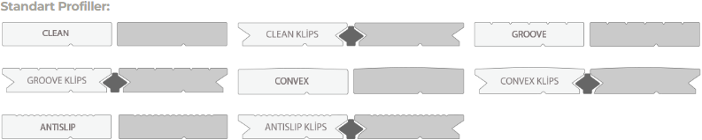 | Profil | Kalınlık (mm) | Genişlik (mm) | Uzunluk (mm) |